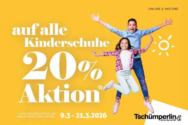 jetzt von 20% Rabatt auf alle Kinderschuhe bei Tschümperlin Schuhe!