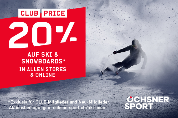 Vom 14. Oktober 2025 bis zum 30. April 2026 profitierst du als CLUB Mitglied – oder wenn du es jetzt wirst – von 20% Rabatt auf Ski und Snowboards